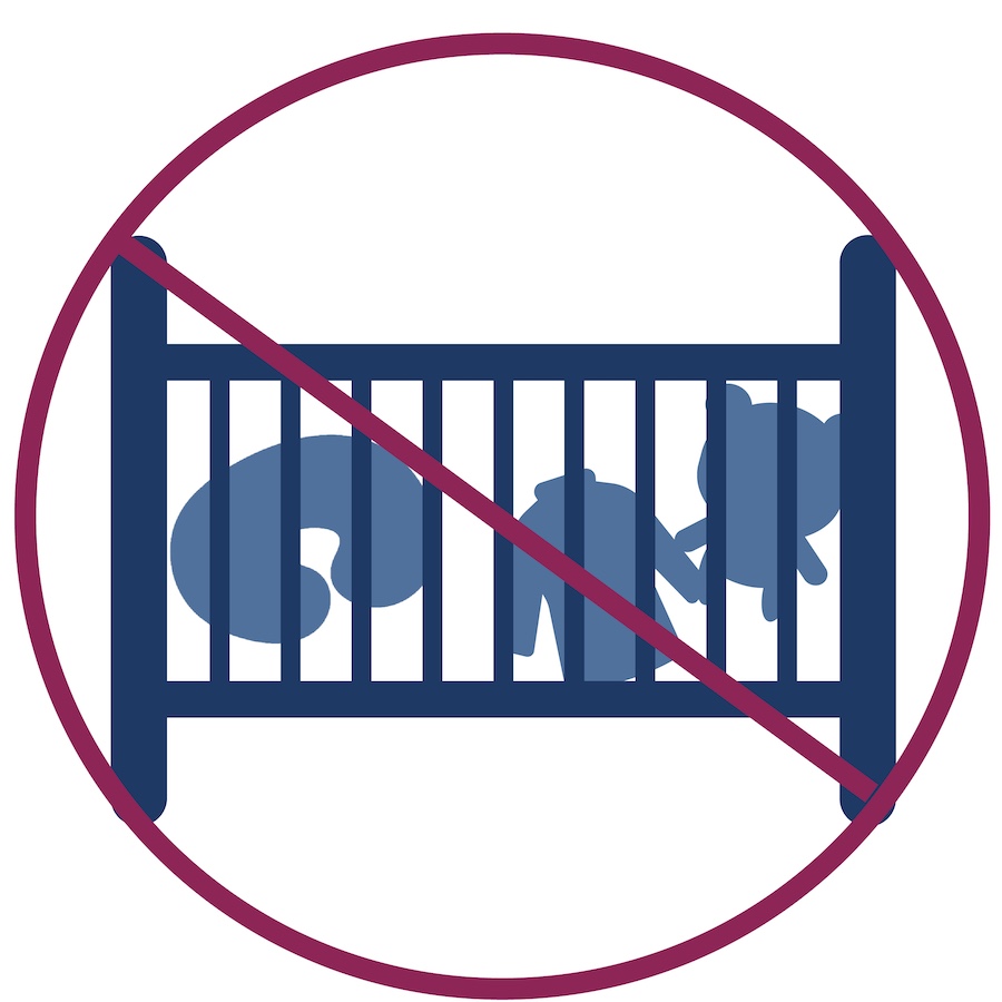 Follow the ABCs of Safe Sleep: ALONE - Make sure babies have their own sleep surface; no sharing cribs or playpens. No stuffed animals, blankets, or pillows. BACK - Always lay babies on their backs for naps. If they can roll over by themselves, they will roll to a comfortable position and you can leave them there. CRIB - babies are safest when they sleep in a crib, on a flat, non-inclined mattress. Babies are not safe sleeping in swings, bouncy chairs, in car seats, or propped up on pillows of any kind. An incline of 10 degrees or more puts babies at risk of positional asphyxiation (cutting off their airways due to the position of their heads.)